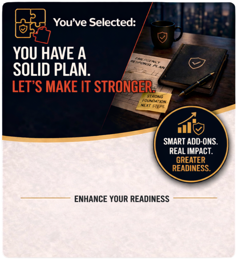If your foundation is in place, we offer targeted coaching and training to sharpen leadership, response, and real-world performance.